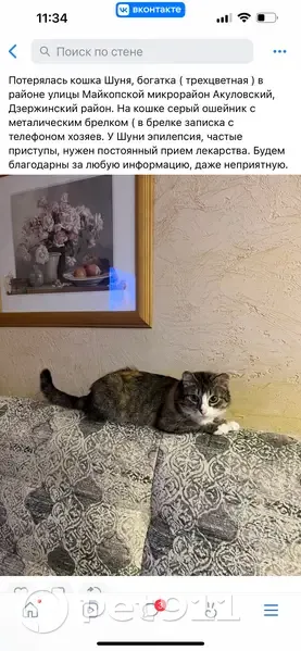 ПРОПАЛ КОТ! Выпрыгнул из окна в районе Гозна...