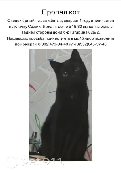 Пропала чёрная кошка, б-р Гага...