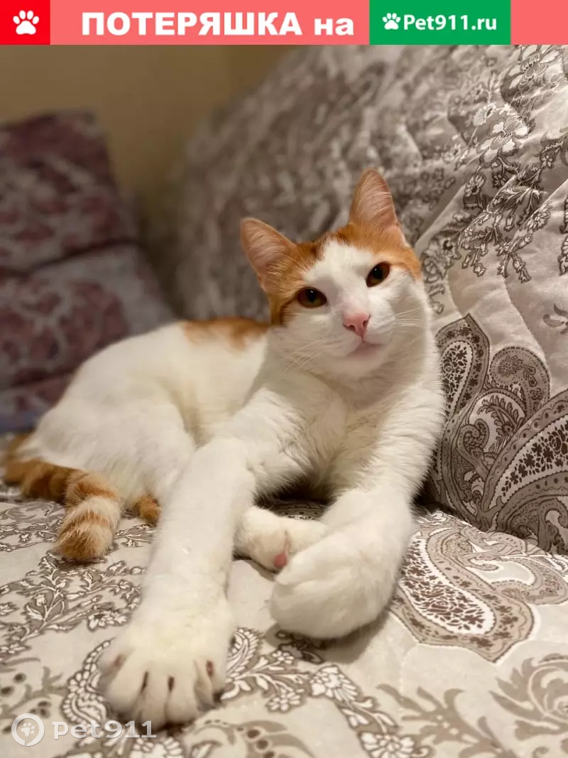 Потерялся рыже-белый кот, мальчик, 3 года, уб...