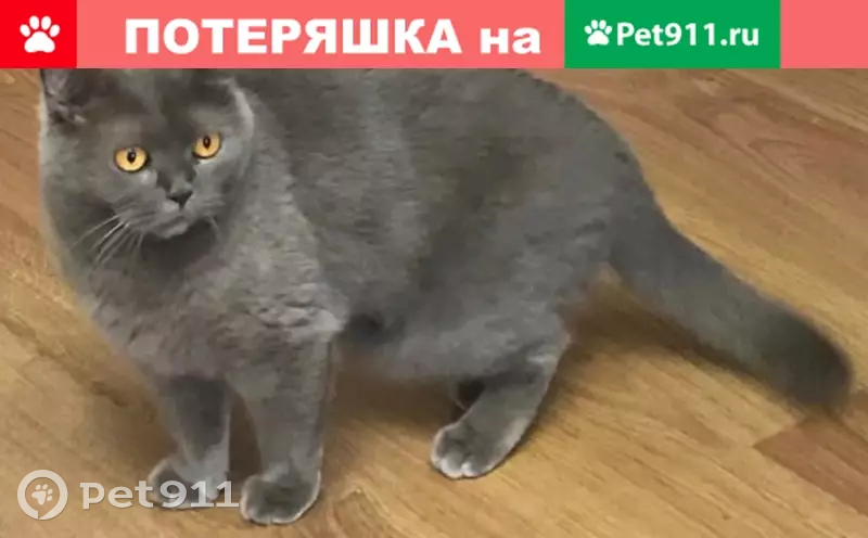 Пропала кошка, британец, серая. Кличка Челси....