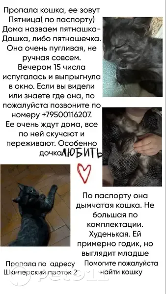 Кошки потеряшки, Санкт-Петербург, фото: Потеряшка кошка, Ленинский пр., 53 к3, СПб