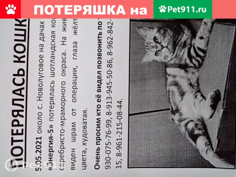 Кошки потеряшки, Новосибирск, фото: Потеряшка Шотландская кошка с шрамом, Новосибирский район, СНТ Энергия-5