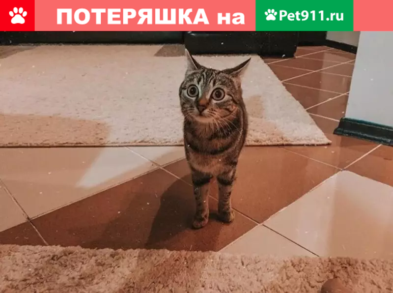Пропал Кот!Окрас тигровый табби,левое ухо нем...