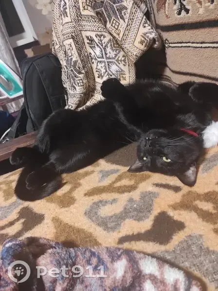 Черный кот,на нём был зелёный ошейник,зовут Г...