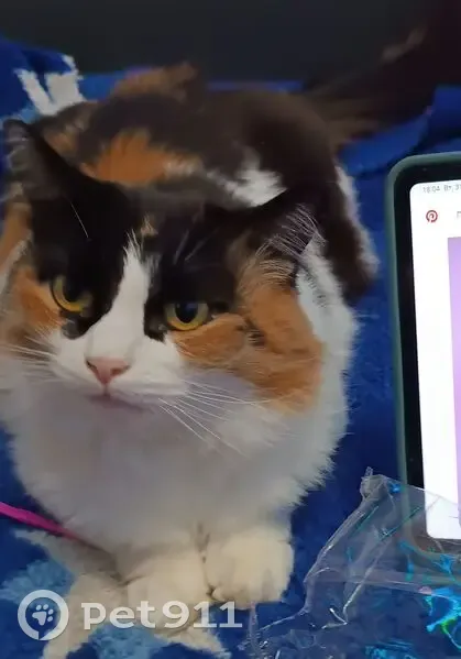 Трех цветная, без ошейника, отзывается на шел...