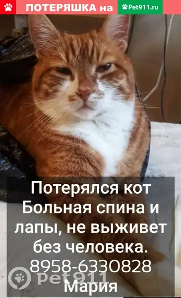 Пропал рыжий кот. Может быть в рыжем ошейнике...