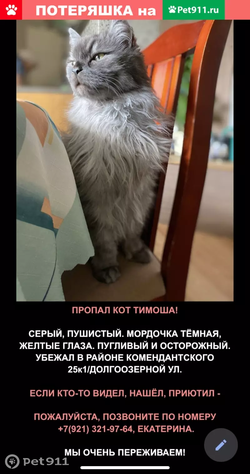Кошки потеряшки, Санкт-Петербург, фото: Потеряшка пушистая кошка на Конной улице, Санкт-Петербург