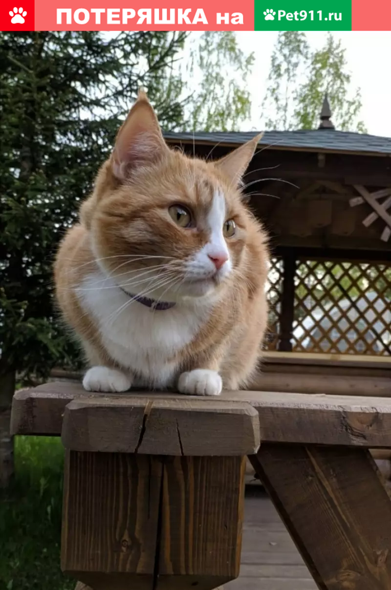 Кошки потеряшки, Санкт-Петербург, фото: Потеряшка кошка в Невском районе, Рыбацкое: Екатерина Горбачева, рыжий мальчик с белой грудкой и фиолетовым ошейником.