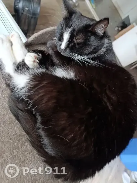 Чёрно-белый кот, худенький. Есть перелом на х...