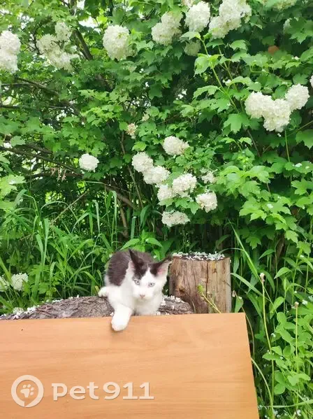 Черно-белый кот, гуляли со шлейкой. Гуляли в...