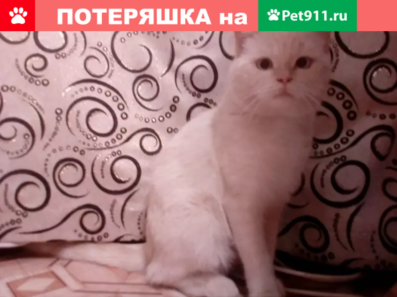 Здравствуйте,потерялся кот белый с красным ош...