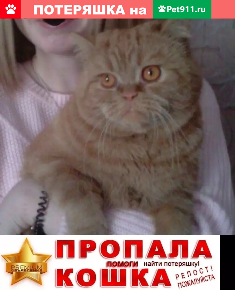 Пропал кот окрас рыжий пушистый в районе вокз...