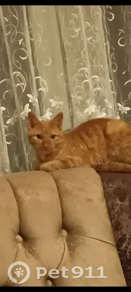 Вислоухий кот рыжего цвета,пугливый,без ошейн...