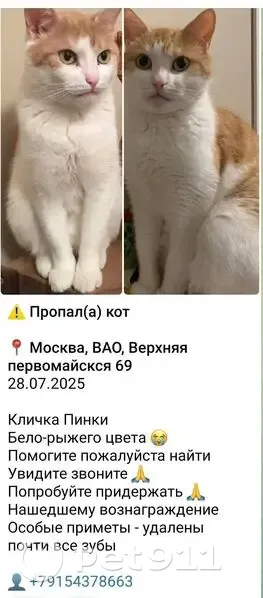 Пропавшие коты и кошки (потеряшки) в Реутове