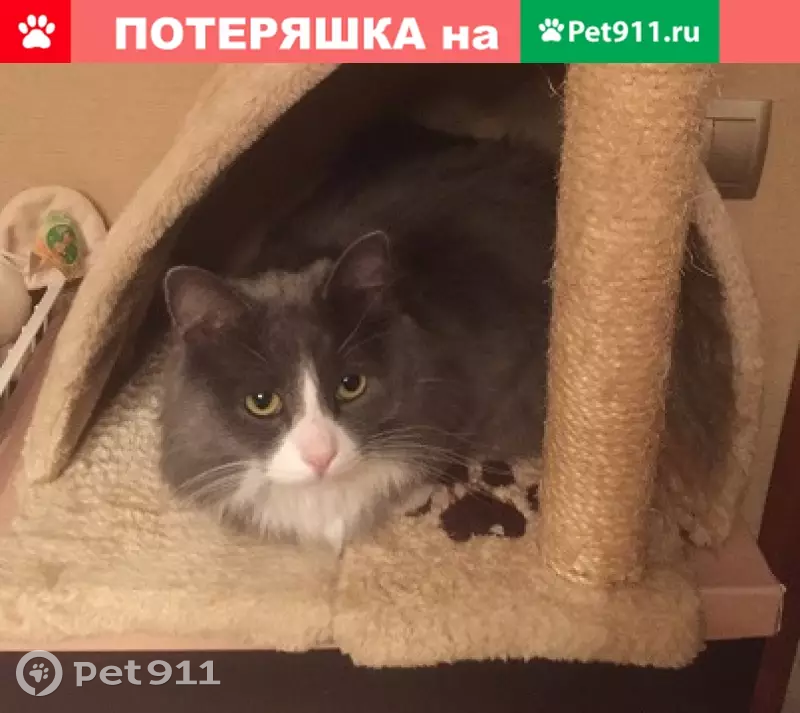 Пропал кот! Совсем домашний! Серый с белой гр...
