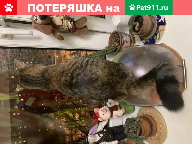Потерялась кошка. Окрас черепаховый (коричнев...