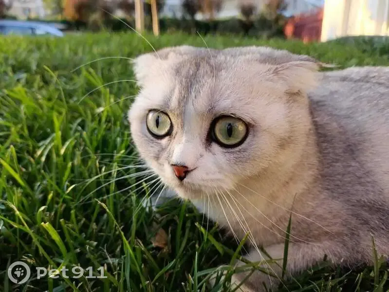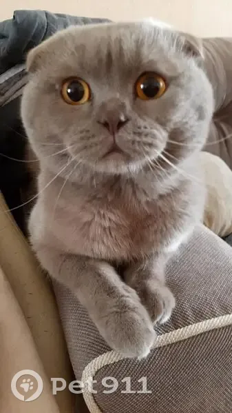 Кошка, вислоухая шотландка, окрас серо-белый,...