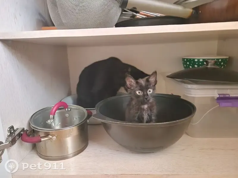 Маленький черный котенок ≈ 3-4 месяца. На кон...