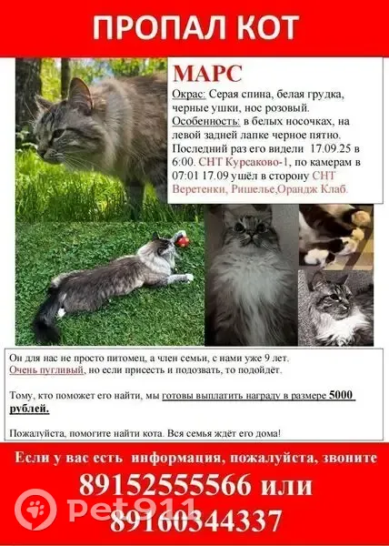 21.10.2025 г. Пропала кошка на посадку на утр...