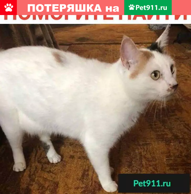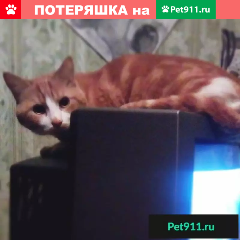 Пропал кот! Гладкошерстный, окрас бело-рыжий....