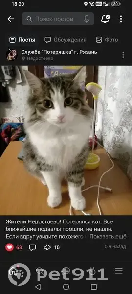 Пропал кот, Урожайная ул., 39,...