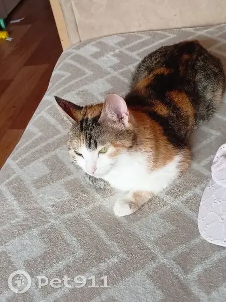 Кошка трёхцветная, короткошёрстная, худая с д...