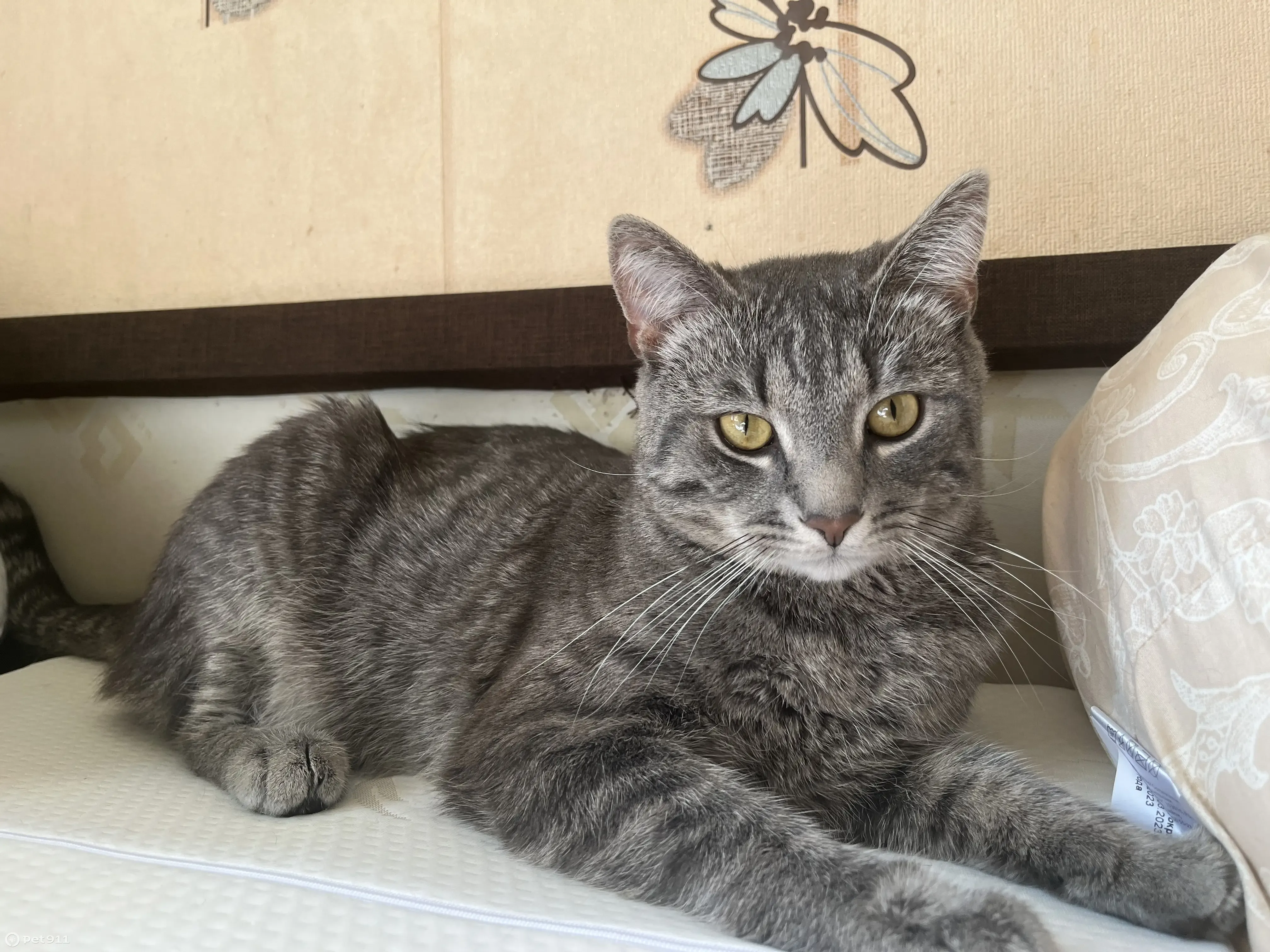 Кошка молодая 1 год 4 месяца серенькая полоса...