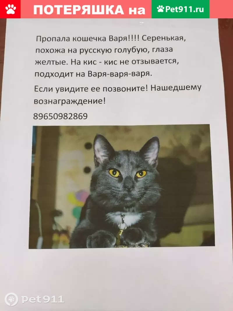 Пропала кошка Варя на Товарище...
