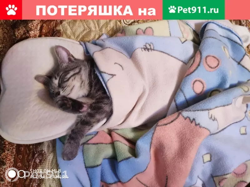 Пропала кошка Серая полосатая Глазки косые Хв...