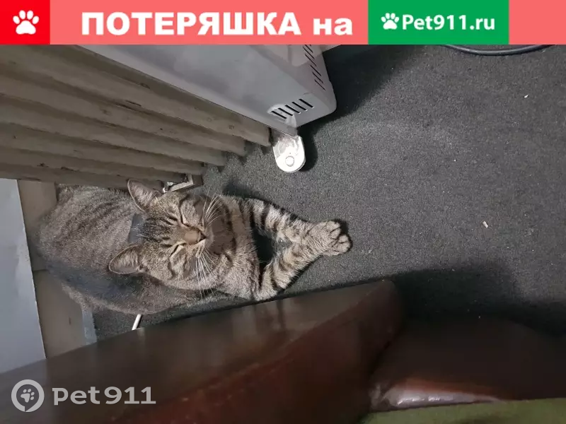 Серый кот 1 год. Ошейник чёрный . Просьба вер...