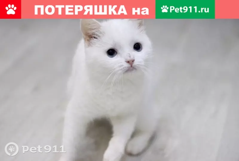 Кошки потеряшки, Санкт-Петербург, фото: Потеряшка белая кошка с голубыми глазами в СПб, возможно в районе Дрезденской улицы или передана женщине из Ушково.