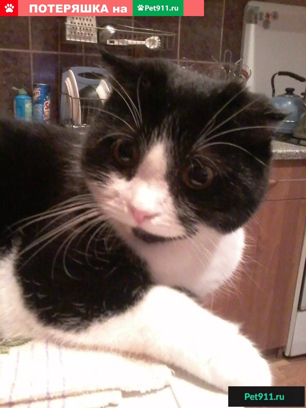 Кошки потеряшки, Пенза, фото: Потеряшка кошка: черно-белый кот, ушки вислоухие, ул. Попова 50, Пенза