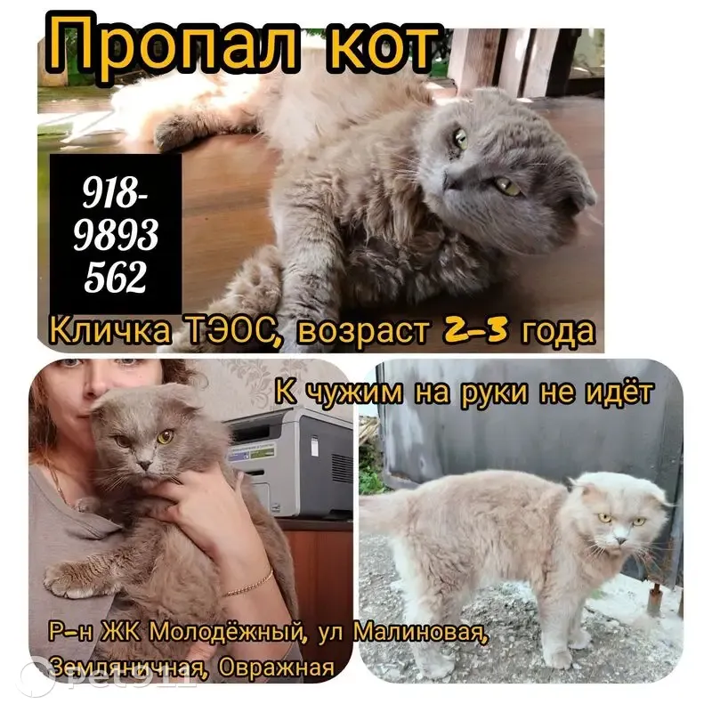 Пропала кошка, Малиновая ул. 3...
