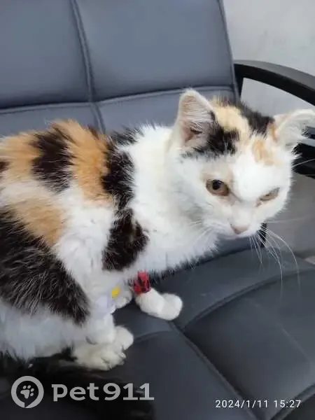 Кошка, трех цветная бело-рыжа-серая. Выпрыгну...