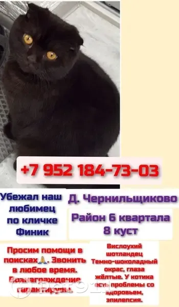 Пропала кошка, Чернильщиково,...
