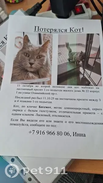 Кошки потеряшки, Мытищи, фото: Потеряшка кошка, Олимпийский пр-т, 10