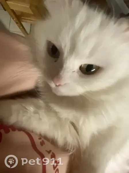 Кошки потеряшки, Балашиха, фото: Потеряшка кошка, Сокольническая улица, 6, Балашиха - белая пушистая, глаза жёлтые