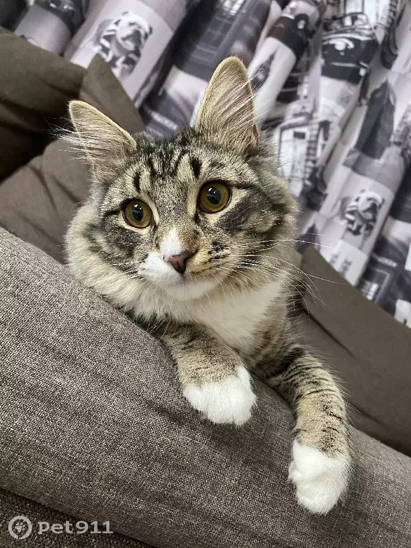 Потерялся кот, 1 год, полосатый серый с бежев...
