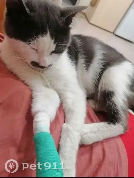 Белая с серии кошка Хромает на заднюю лапу Кр...