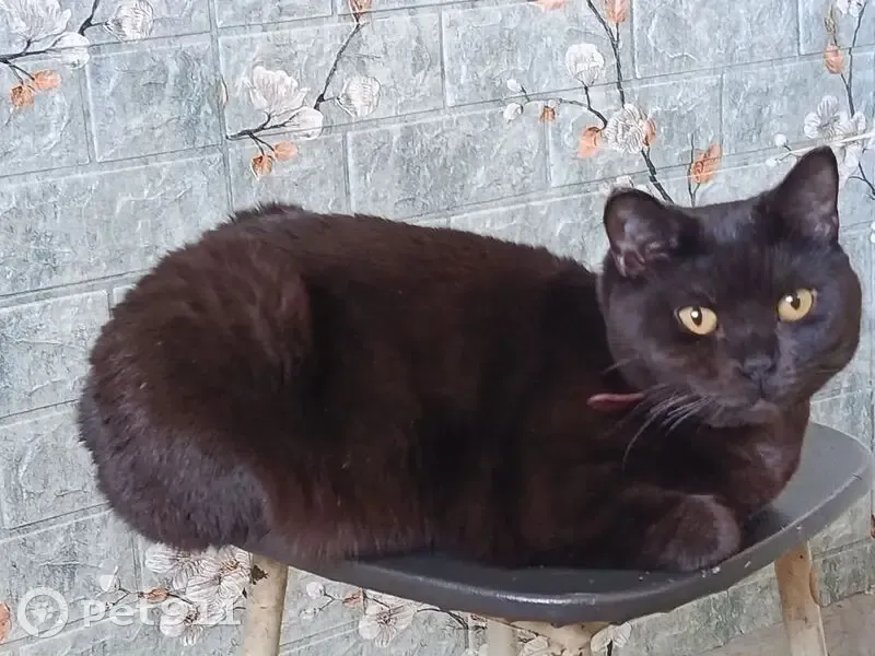 Чёрная шерсть, жёлтые глаза, упитанная, вес в...