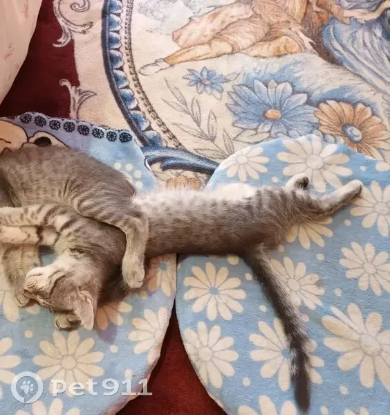Пропал серый котёнок с белой грудкой и белыми...