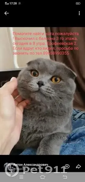 Пропал кот, дымчатый британский вислоухий. Зо...