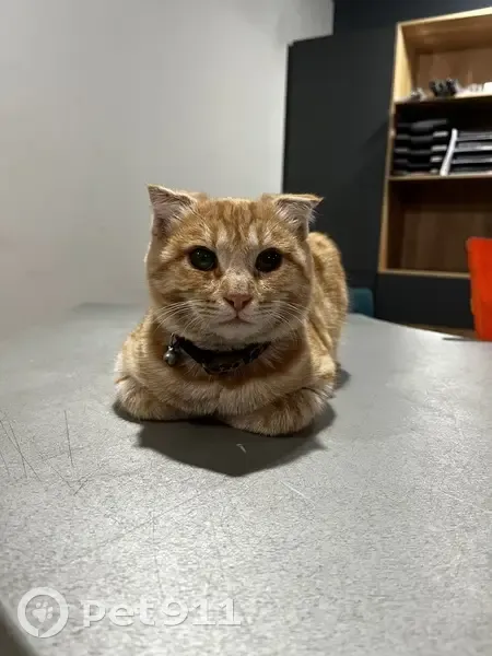 Ярко рыжий кот, с ошейником, на мордочке могу...