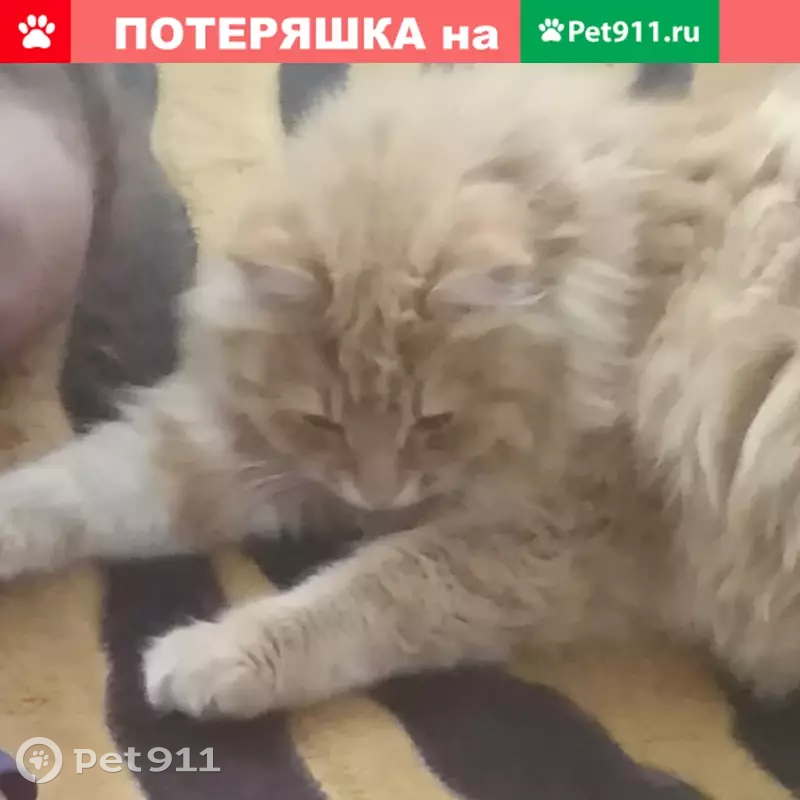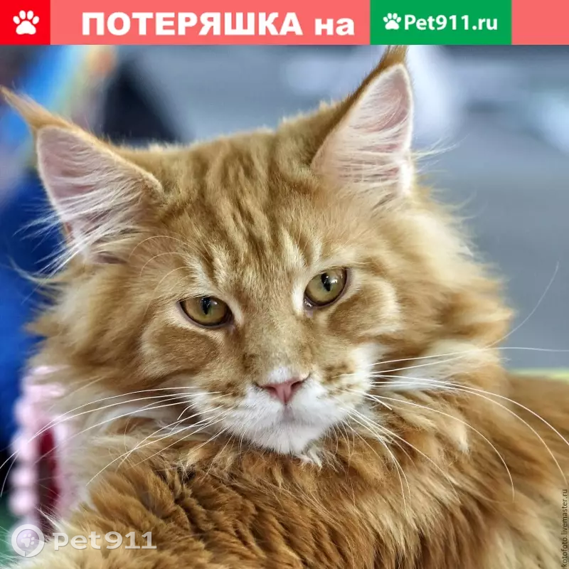 Потерялся кот породы Мейкун окрас рыжий на ул...