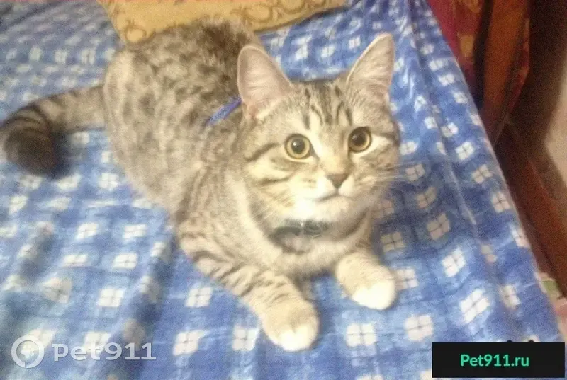 Пропал кот , цвет черный мрамор , маленький...