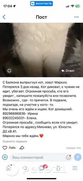 Пропавшие коты и кошки (потеряшки) в Татариново