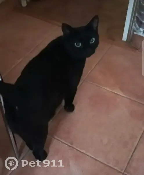 Черный кот рыжий ошейник зеленные глаза пропл...