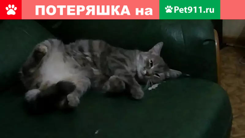 Пропал котёнок Тимошка,на вид 9 месяцев,серо-...