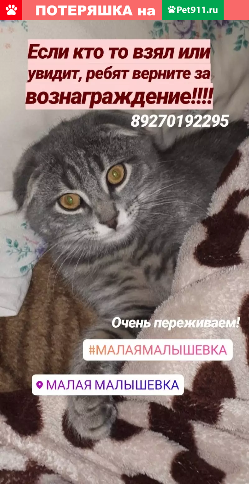 Малая Малышевка!!!!У моей мамы пропал кот се...