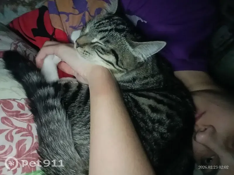 Кошки потеряшки, Вольно-Надеждинское, фото: Потеряшка кот, улица Строителей, 4, Вольно-Надеждинское - полосатый, белые задние лапки